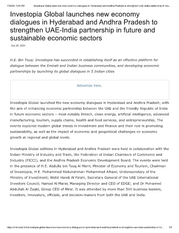 7/30/25, 3:45 PM Investopia Global launches new economy dialogues in Hyderabad and Andhra Pradesh to strengthen UAE-India partnership in futu…