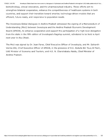 7/30/25, 3:45 PM Investopia Global launches new economy dialogues in Hyderabad and Andhra Pradesh to strengthen UAE-India partnership in futu…
