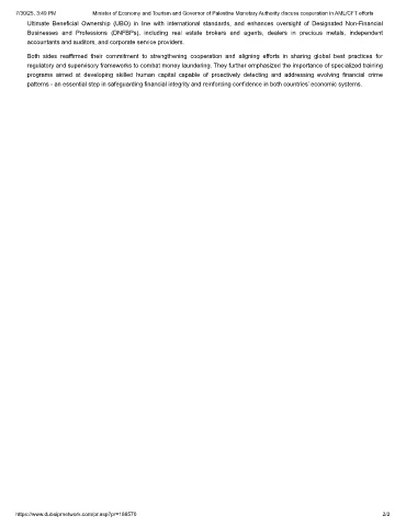 7/30/25, 3:49 PM Minister of Economy and Tourism and Governor of Palestine Monetary Authority discuss cooperation in AML/CFT efforts