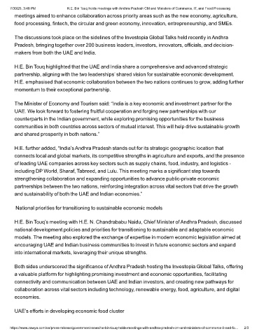 7/30/25, 3:48 PM H.E. Bin Touq holds meetings with Andhra Pradesh CM and Ministers of Commerce, IT, and Food Processing
