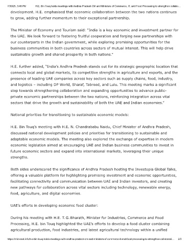7/30/25, 3:48 PM H.E. Bin Touq holds meetings with Andhra Pradesh CM and Ministers of Commerce, IT, and Food Processing to strengthen collabo…