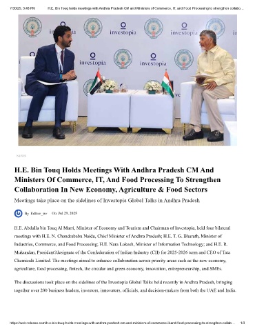 7/30/25, 3:48 PM H.E. Bin Touq holds meetings with Andhra Pradesh CM and Ministers of Commerce, IT, and Food Processing to strengthen collabo…