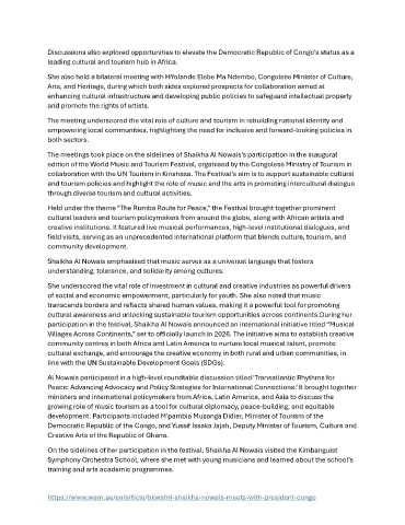 She also held a bilateral meeting with HYolande Elebe Ma Ndembo, Congolese Minister of Culture,