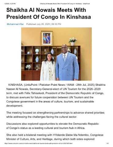 7/29/25, 4:26 PM Shaikha Al Nowais Meets With President Of Congo In Kinshasa - UrduPoint