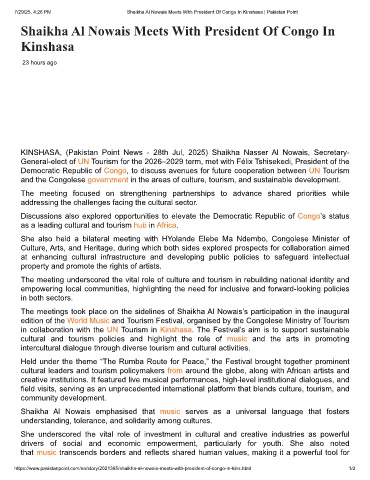 https://www.pakistanpoint.com/en/story/2021365/shaikha-al-nowais-meets-with-president-of-congo-in-kins.html 1/2