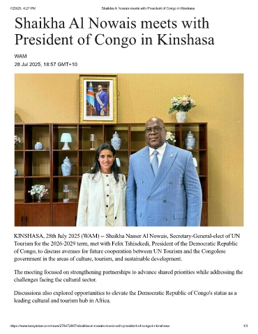 7/29/25, 4:27 PM Shaikha Al Nowais meets with President of Congo in Kinshasa