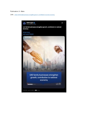 Publication: X - Wam Link: - Wam: UAE family businesses strengthen growth, contribution to national economy