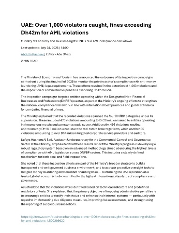 mitigate money laundering and terrorism financing risks — reinforcing the UAE’s position as a
