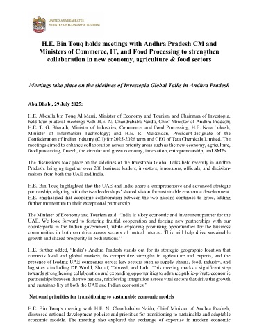 H.E. Bin Touq holds meetings with Andhra Pradesh CM and
