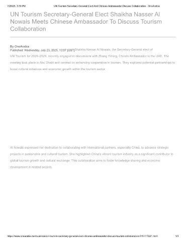 7/28/25, 3:39 PM UN Tourism Secretary-General Elect And Chinese Ambassador Discuss Collaboration - OneArabia