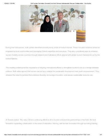 7/28/25, 3:39 PM UN Tourism Secretary-General Elect And Chinese Ambassador Discuss Collaboration - OneArabia