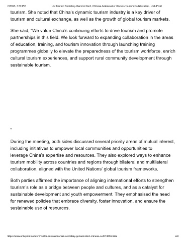 7/28/25, 3:39 PM UN Tourism Secretary-General Elect, Chinese Ambassador Discuss Tourism Collaboration - UrduPoint