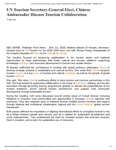 7/28/25, 3:40 PM UN Tourism Secretary-General Elect, Chinese Ambassador Discuss Tourism Collaboration | Pakistan Point