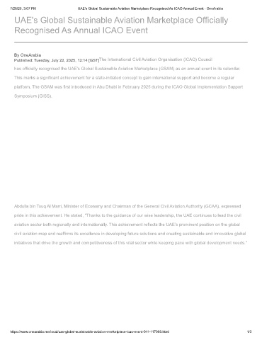7/28/25, 3:07 PM UAE's Global Sustainable Aviation Marketplace Recognised As ICAO Annual Event - OneArabia