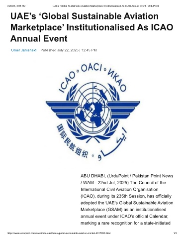 7/28/25, 3:08 PM UAE’s ‘Global Sustainable Aviation Marketplace’ Institutionalised As ICAO Annual Event - UrduPoint