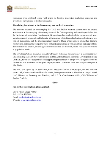 Understanding (MoU) between Investopia and the Andhra Pradesh Economic Development Board