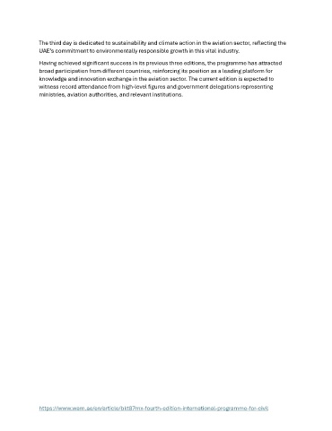 The third day is dedicated to sustainability and climate action in the aviation sector, reflecting the