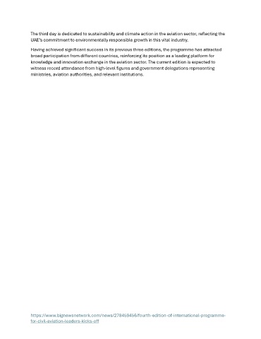 The third day is dedicated to sustainability and climate action in the aviation sector, reflecting the