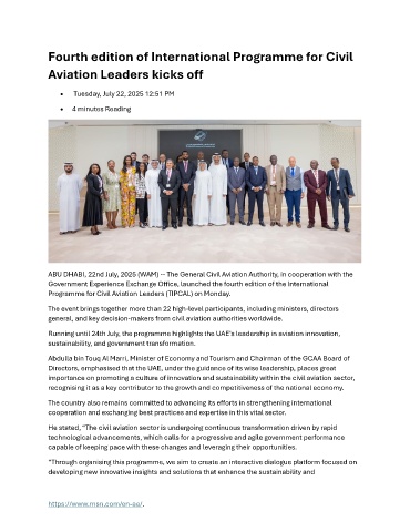 ABU DHABI, 22nd July, 2025 (WAM) -- The General Civil Aviation Authority, in cooperation with the