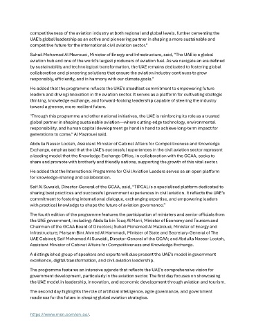 sharing best practices and successful government experiences in civil aviation. It reflects the UAE’s