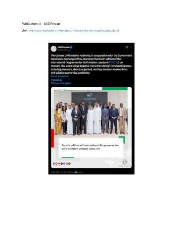 Publication: X – UAE Forsan Link: UAE Forsan: Fourth edition of International Programme for Civil Aviation Leaders kicks off