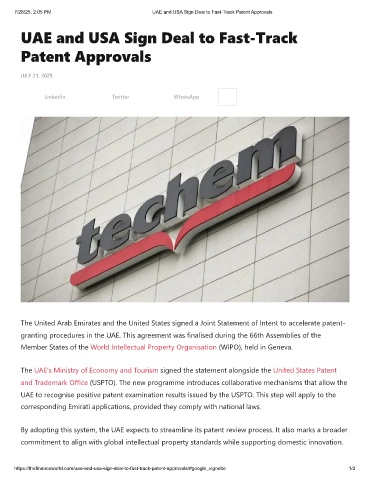 7/28/25, 2:05 PM UAE and USA Sign Deal to Fast-Track Patent Approvals
