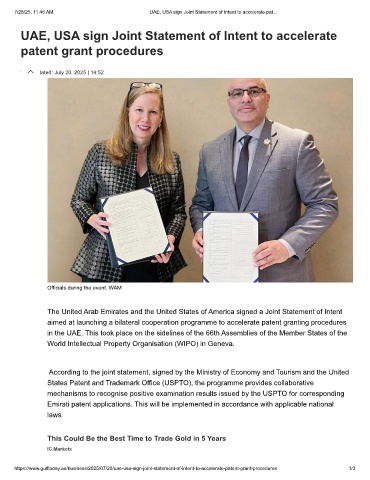 https://www.gulftoday.ae/business/2025/07/20/uae-usa-sign-joint-statement-of-intent-to-accelerate-patent-grant-procedures 1/3