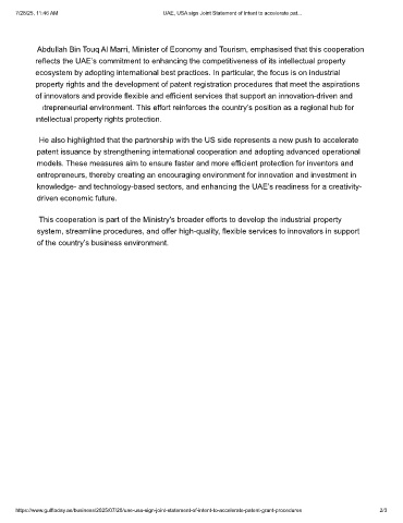 https://www.gulftoday.ae/business/2025/07/20/uae-usa-sign-joint-statement-of-intent-to-accelerate-patent-grant-procedures 2/3
