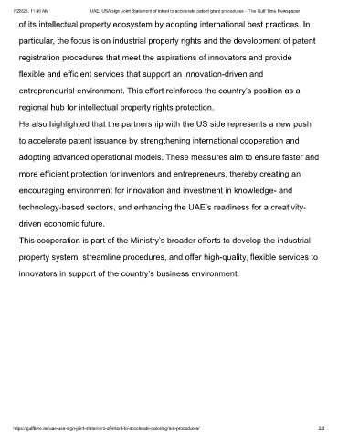 https://gulftime.ae/uae-usa-sign-joint-statement-of-intent-to-accelerate-patent-grant-procedures/ 2/2
