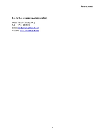 Press Release For further information, please contact: Orient Planet Group (OPG) Tel: +971 4 4562888 Email: media@orientplanet.com Website: www.orientplanet.com 2