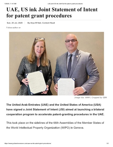 7/28/25, 11:47 AM UAE and US ink Joint SoI for patent grant procedures