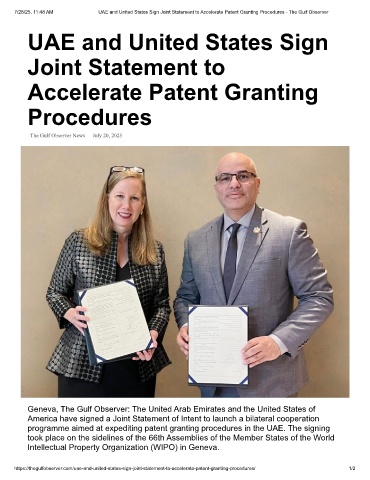 https://thegulfobserver.com/uae-and-united-states-sign-joint-statement-to-accelerate-patent-granting-procedures/ 1/2