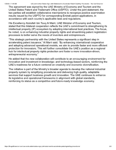 https://thegulfobserver.com/uae-and-united-states-sign-joint-statement-to-accelerate-patent-granting-procedures/ 2/2