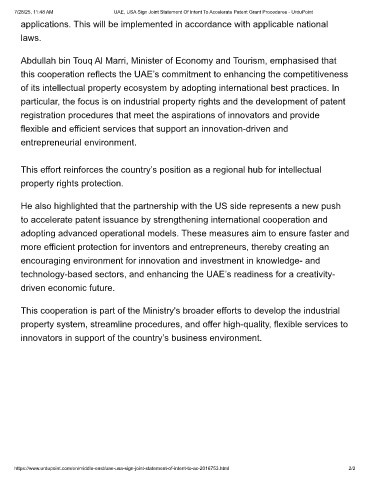 7/28/25, 11:48 AM UAE, USA Sign Joint Statement Of Intent To Accelerate Patent Grant Procedures - UrduPoint