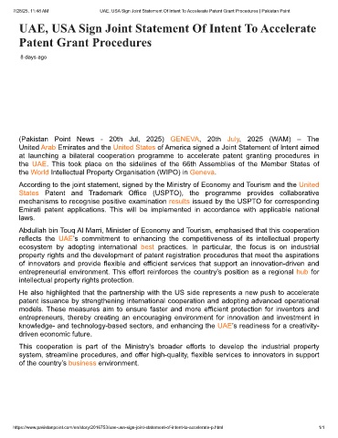 7/28/25, 11:48 AM UAE, USA Sign Joint Statement Of Intent To Accelerate Patent Grant Procedures | Pakistan Point