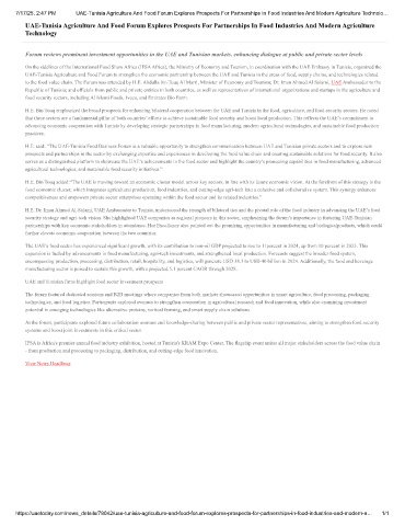 7/17/25, 2:47 PM UAE-Tunisia Agriculture And Food Forum Explores Prospects For Partnerships In Food Industries And Modern Agriculture Technolo…
