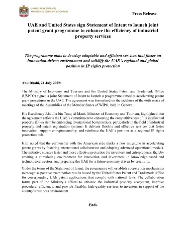 the agreement reflects the UAE’s commitment to enhancing the competitiveness of its intellectual