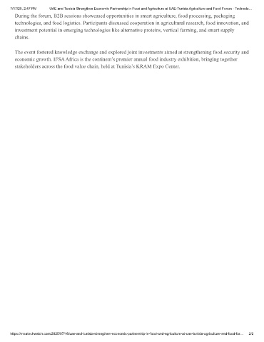 7/17/25, 2:47 PM UAE and Tunisia Strengthen Economic Partnership in Food and Agriculture at UAE-Tunisia Agriculture and Food Forum - Technolo…