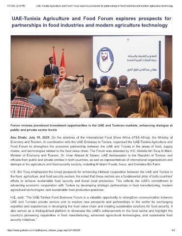 7/17/25, 2:14 PM UAE-Tunisia Agriculture and Food Forum explores prospects for partnerships in food industries and modern agriculture technology