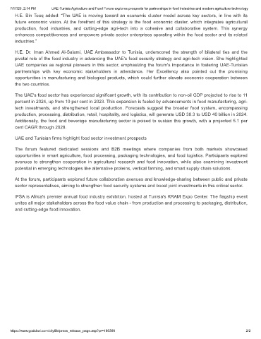 7/17/25, 2:14 PM UAE-Tunisia Agriculture and Food Forum explores prospects for partnerships in food industries and modern agriculture technology