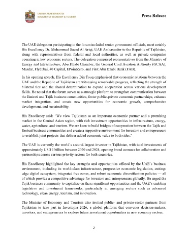 Tajik business community to capitalize on these significant opportunities and the UAE’s enabling