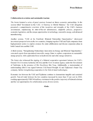 of Tajikistan, in the presence of His Excellency Bin Touq. Additionally, a memorandum of
