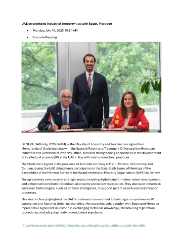 GENEVA, 14th July, 2025 (WAM) -- The Ministry of Economy and Tourism has signed two