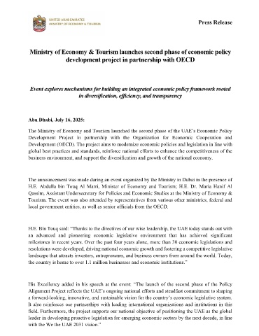 The Ministry of Economy and Tourism launched the second phase of the UAE’s Economic Policy