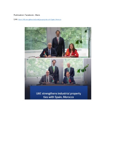 Publication: Facebook - Wam Link: Wam: UAE strengthens industrial property ties with Spain, Morocco