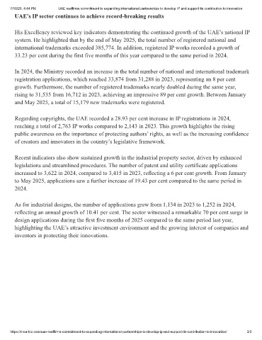 7/16/25, 4:44 PM UAE reaffirms commitment to expanding international partnerships to develop IP and support its contribution to innovation