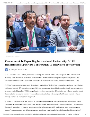 7/16/25, 4:45 PM commitment to expanding international partnerships sUAE reaffirmand support its contribution to innovation IPto develop | Web Rel…