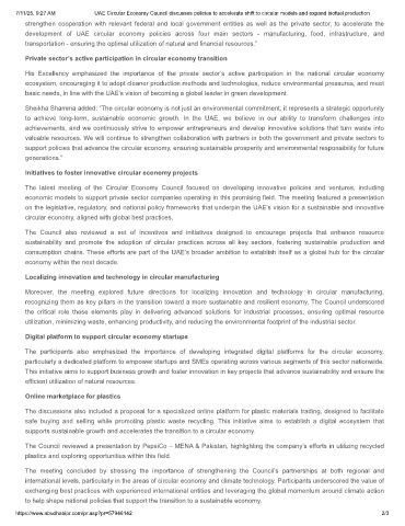 7/11/25, 9:27 AM UAE Circular Economy Council discusses policies to accelerate shift to circular models and expand biofuel production