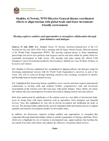 Tourism for the term 2026–2029, held a meeting with Dr Ngozi Okonjo-Iweala, Director-General