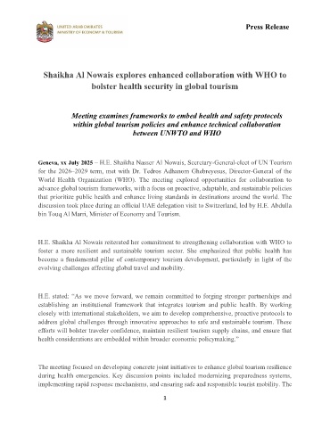 Geneva, xx July 2025 – H.E. Shaikha Nasser Al Nowais, Secretary-General-elect of UN Tourism